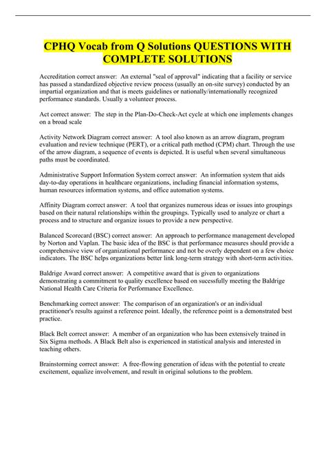 Read Online Q SOLUTIONS CPHQ Library Binding